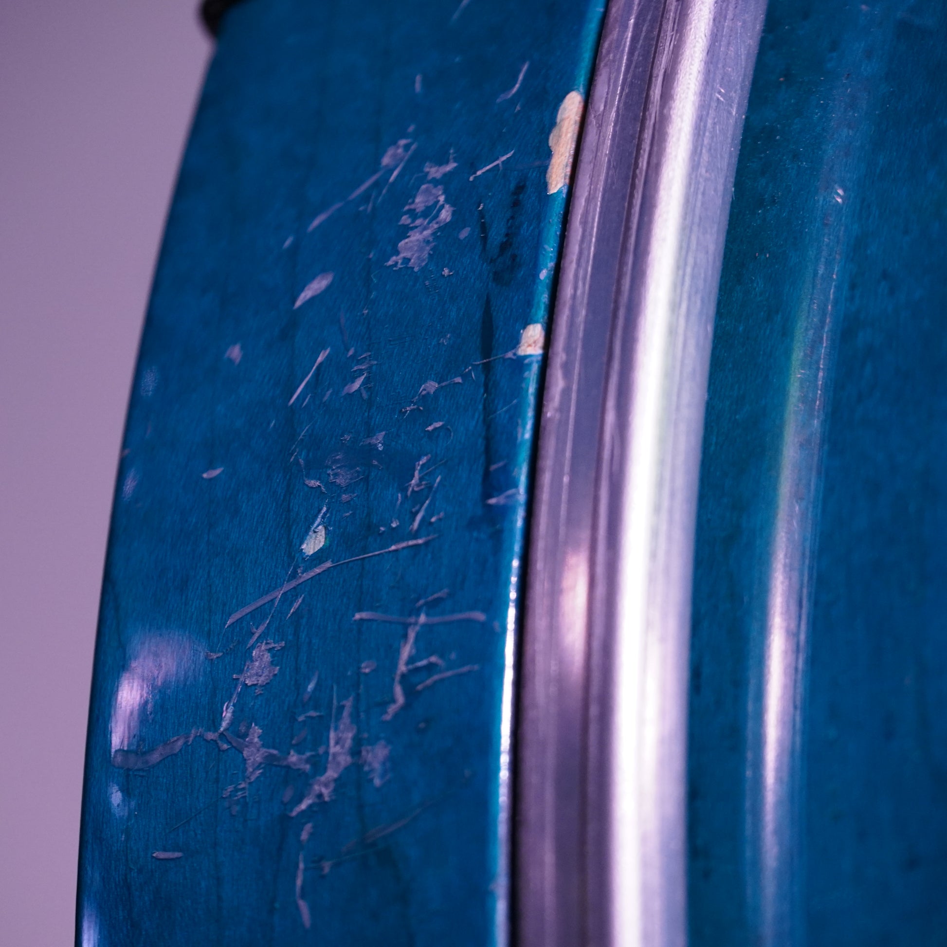 This kit is in very good condition overall, especially considering it’s now around 35 years old. It shows some expected cosmetic wear, mainly on the bass drum, including a few chips, light lacquer checking, and surface marks. The hoops have some minor chipping, typical for its age, and the most noticeable wear is on the right-hand side of the bass drum. There’s also a small area on the bottom hoop of the 10" tom where a bit of chrome has flaked. Fortunately, all of this is purely cosmetic, the shells themselves are absolutely solid and structurally perfect.