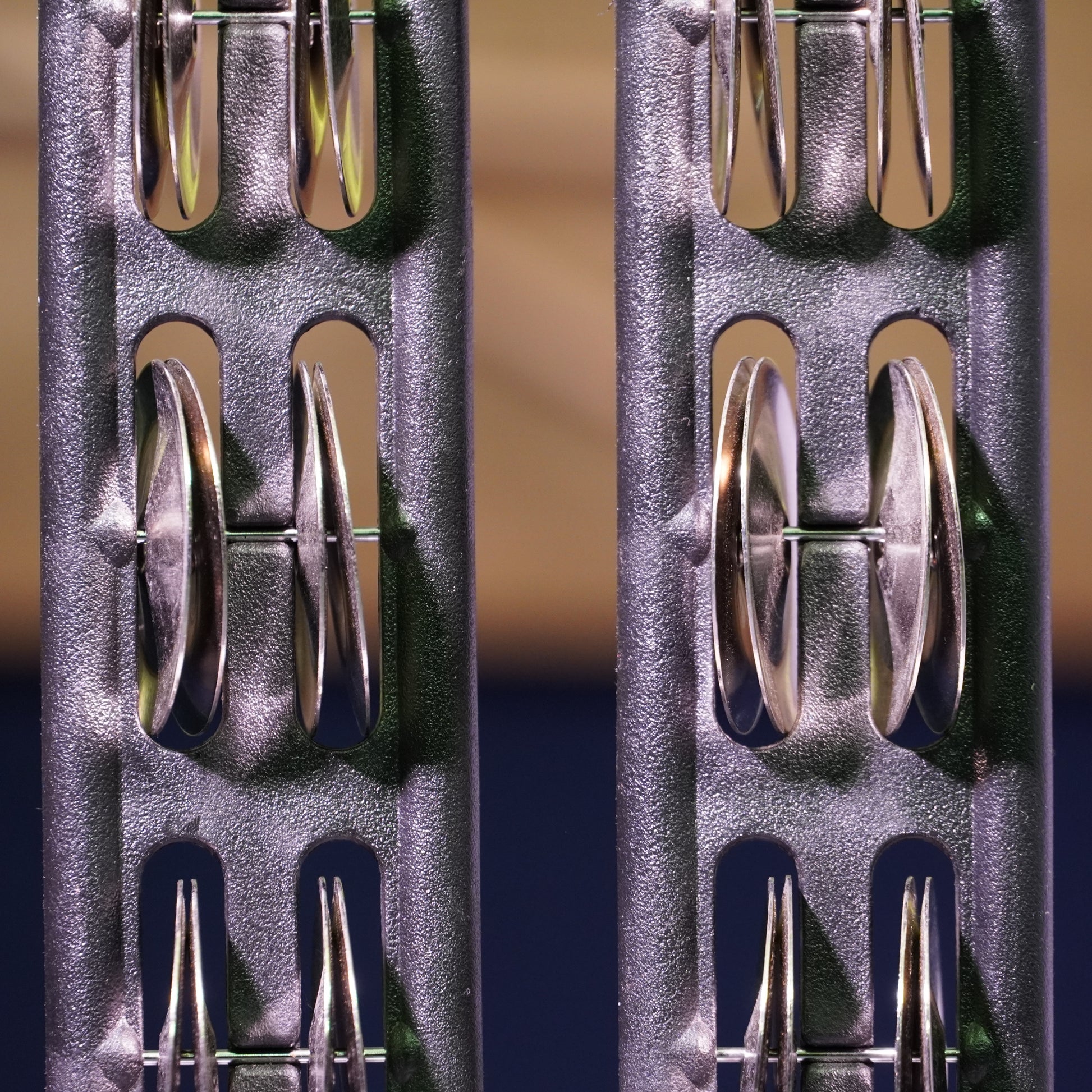 Add bright, cutting jingle textures to your setup with this pair of LP Jingle Sticks. Each stick features six pairs of steel jingles mounted in a tough black plastic frame, delivering a sharp, articulate sound perfect for acoustic gigs, Latin grooves, or layering over kit or cajon. The handles are wrapped in soft foam grips providing comfort and control for extended playing sessions.