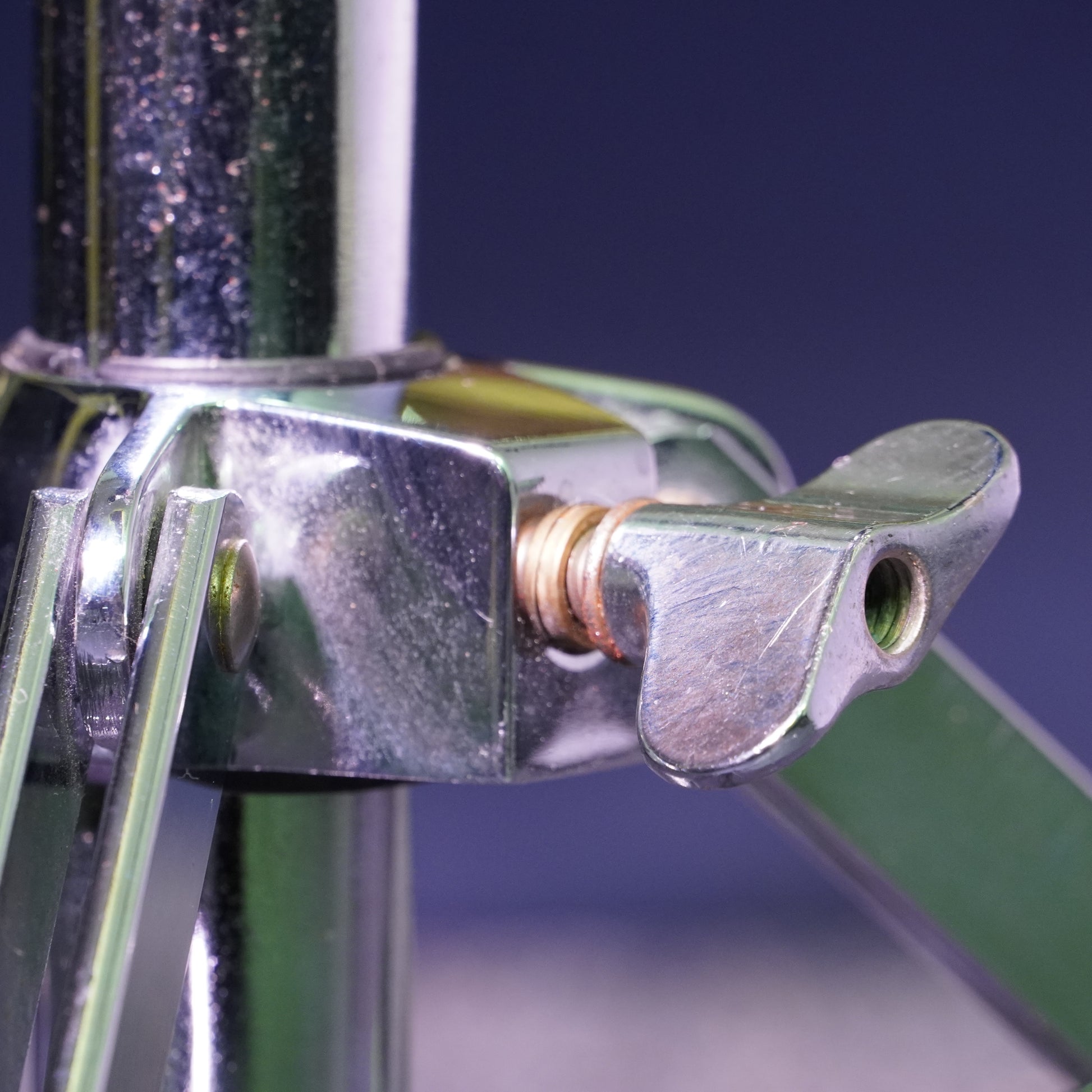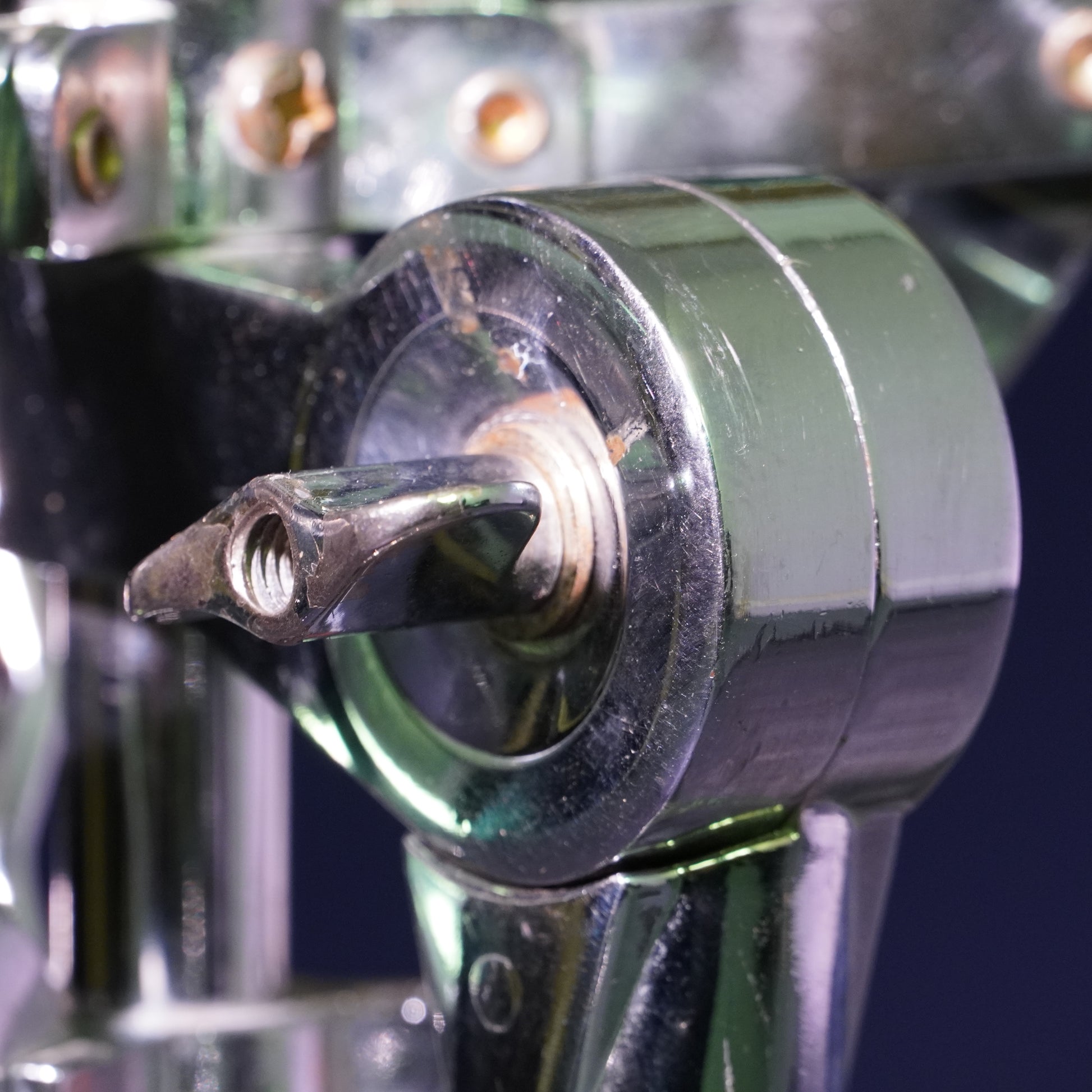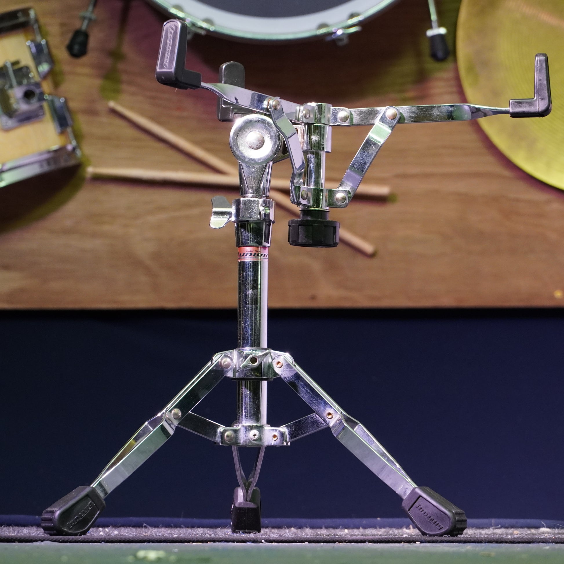 A solid, mid-weight snare stand from Ludwig’s 400 Series hardware line. Built with strong double-braced legs, large rubber feet and a smooth gear tilter for secure snare positioning. It carries that unmistakable early-2000s Ludwig look with the classic orange badge and cast fittings, offering a nice mix of reliability and character.