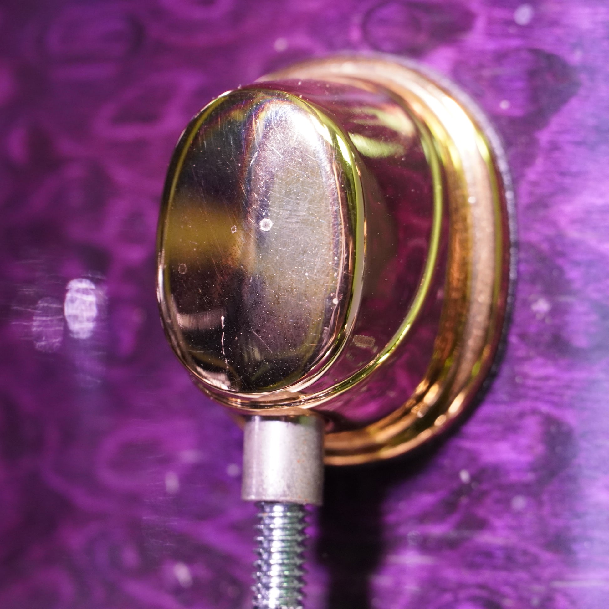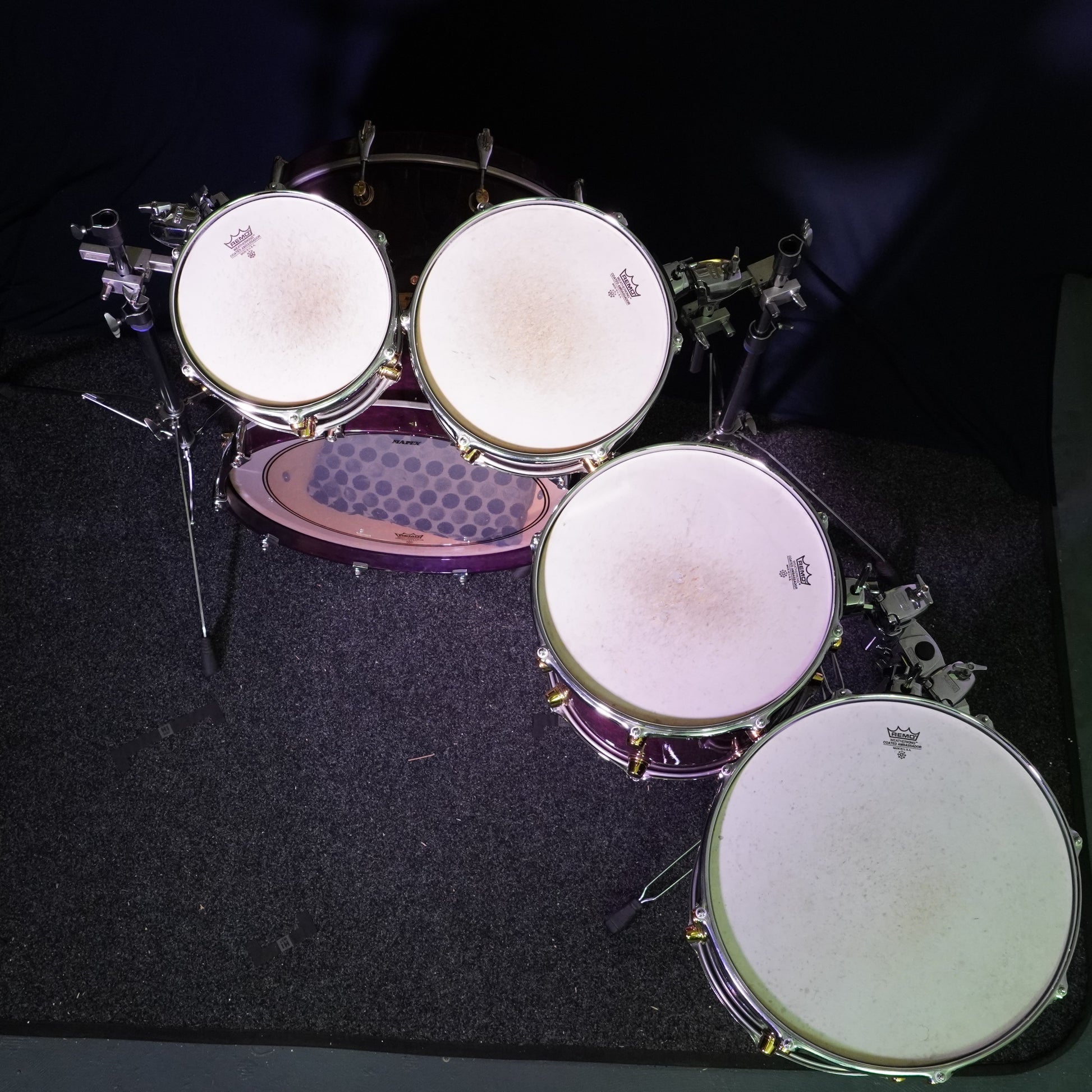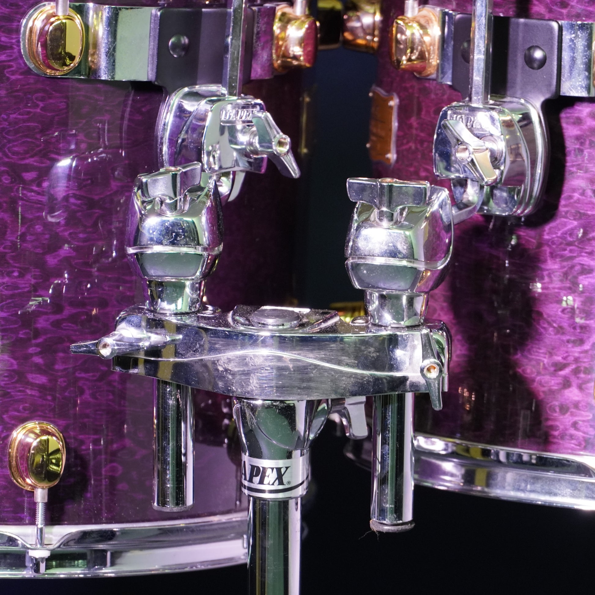 This Mapex Orion Classic Series shell pack is a stunning example of Mapex’s top-tier craftsmanship from their Taiwan production era. Finished in Transparent Violet Bird’s Eye, it features a real bird’s-eye maple outer veneer under a deep gloss lacquer, one of the rarest and most visually striking finishes Mapex ever offered.