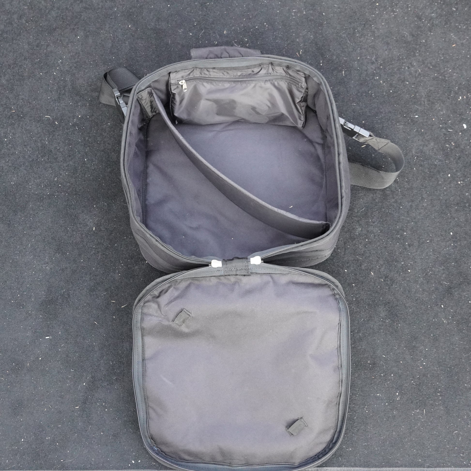 Very good condition overall. There are some signs of use, but everything is fully functional – zips work smoothly, the handle is sturdy, and the interior is clean and well-padded. A reliable and road-ready case for your double pedal setup.