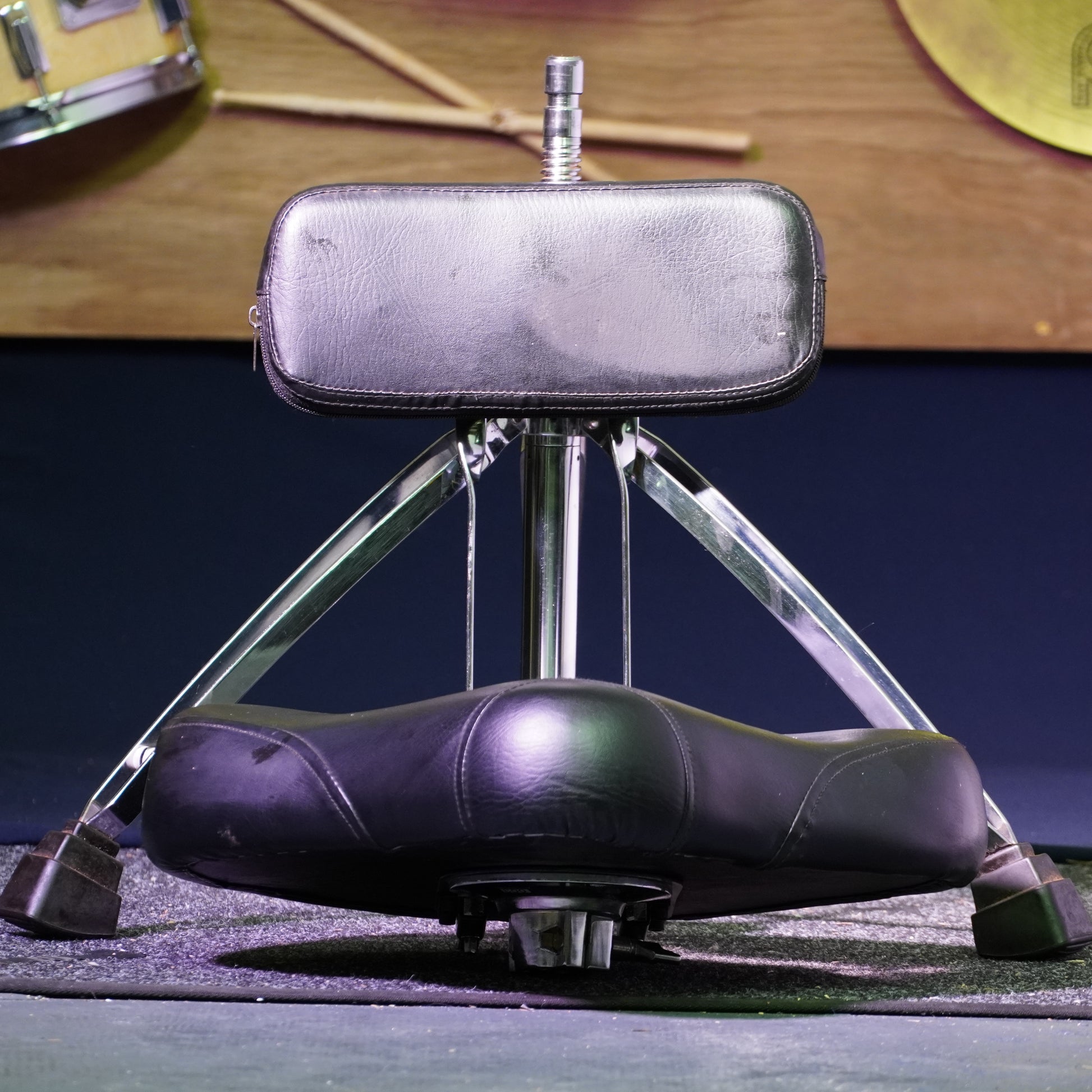 A comfortable, heavy-duty drum throne featuring a wide saddle style seat and integrated backrest for added lower-back support. The spindle-style height adjustment offers quick and precise positioning, while the double-braced legs ensure excellent stability for studio and stage use. Despite lacking branding, it’s built solidly and performs on par with many well-known models, a great option for drummers seeking ergonomic support on a budget.