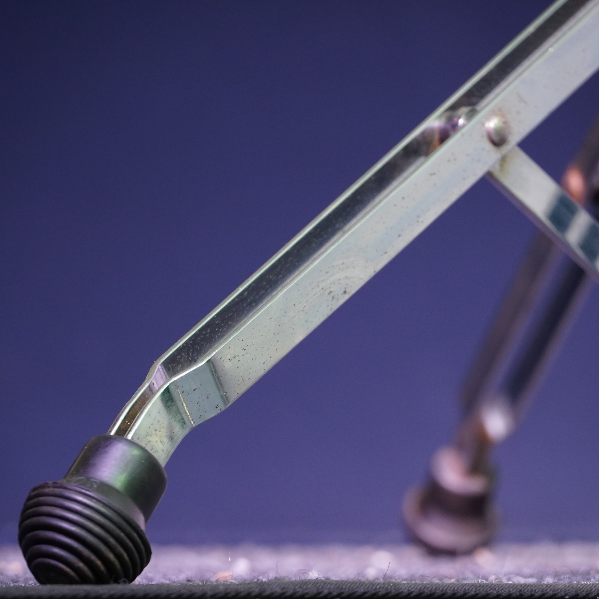 This stand is in good condition overall, showing some pitting and small rust spots on the chrome but functioning perfectly. All clamps and joints tighten securely, and the stand remains solid and stable.