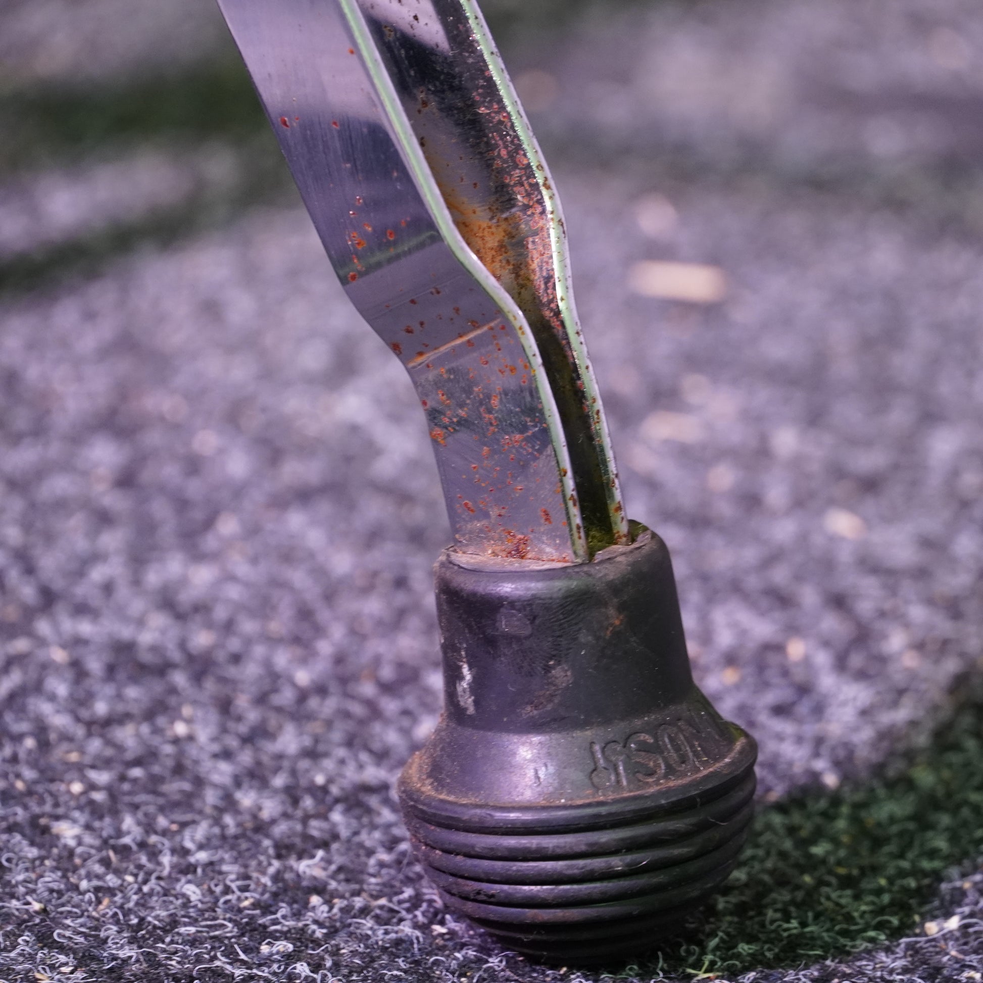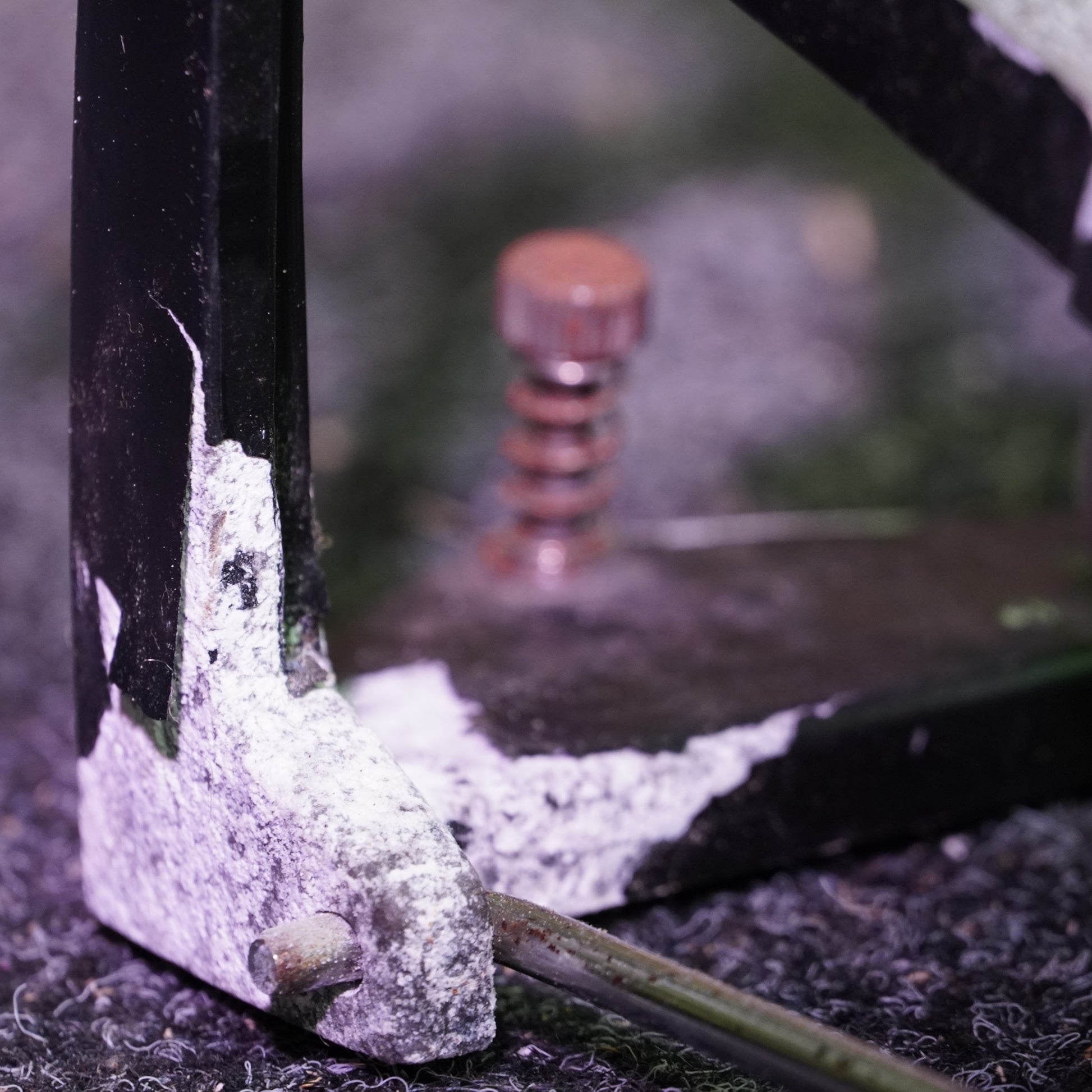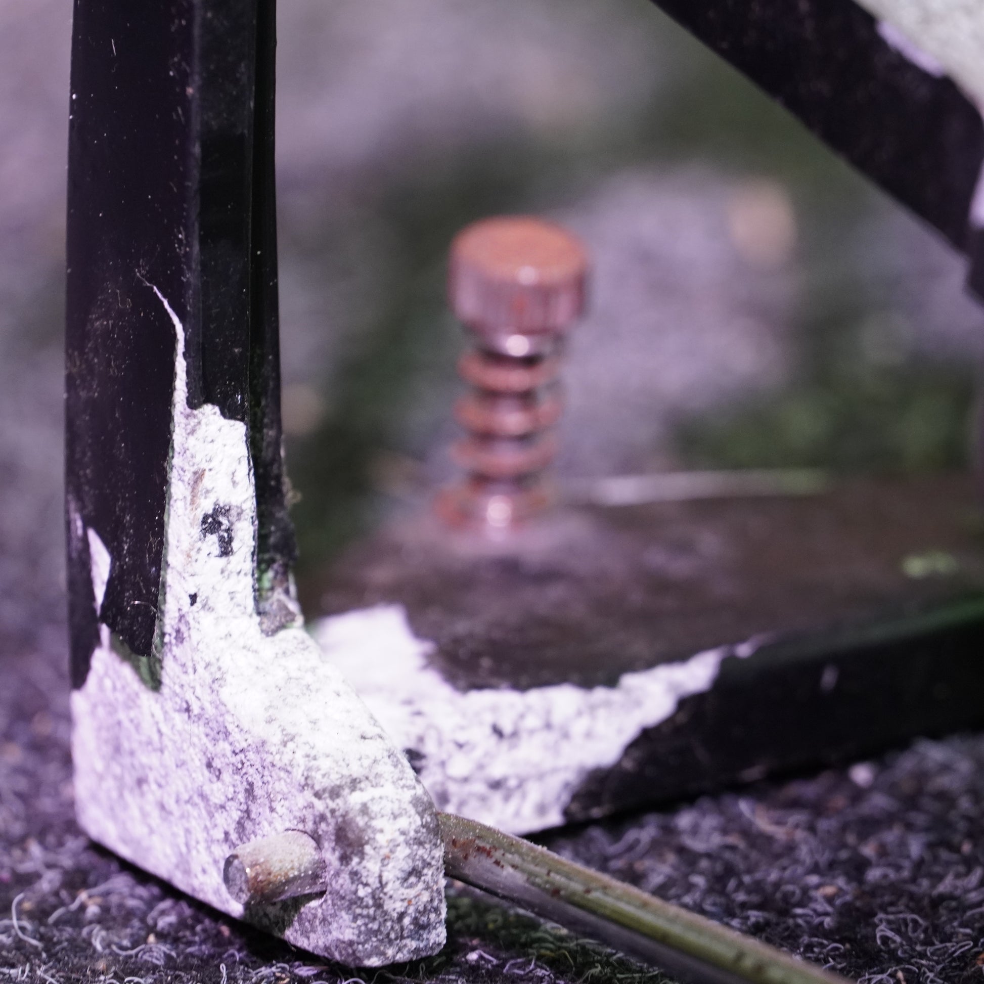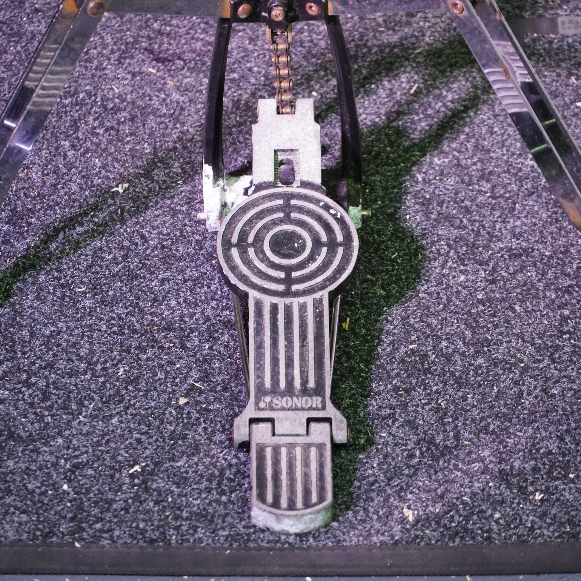 This stand is in fair condition, showing clear signs of use throughout. There is noticeable rust on the chrome and some flaking of the black paint around the pedal and frame. Despite the cosmetic wear, the pedal action remains smooth and fully functional, making this a solid, great-value option for any working drummer.