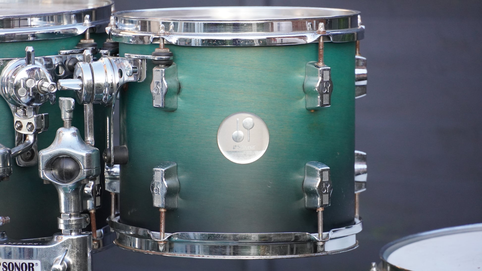 The toms have Evans G1 clear drum heads on the batter side and the stock Sonor heads on the resonant side which are both in very good condition.