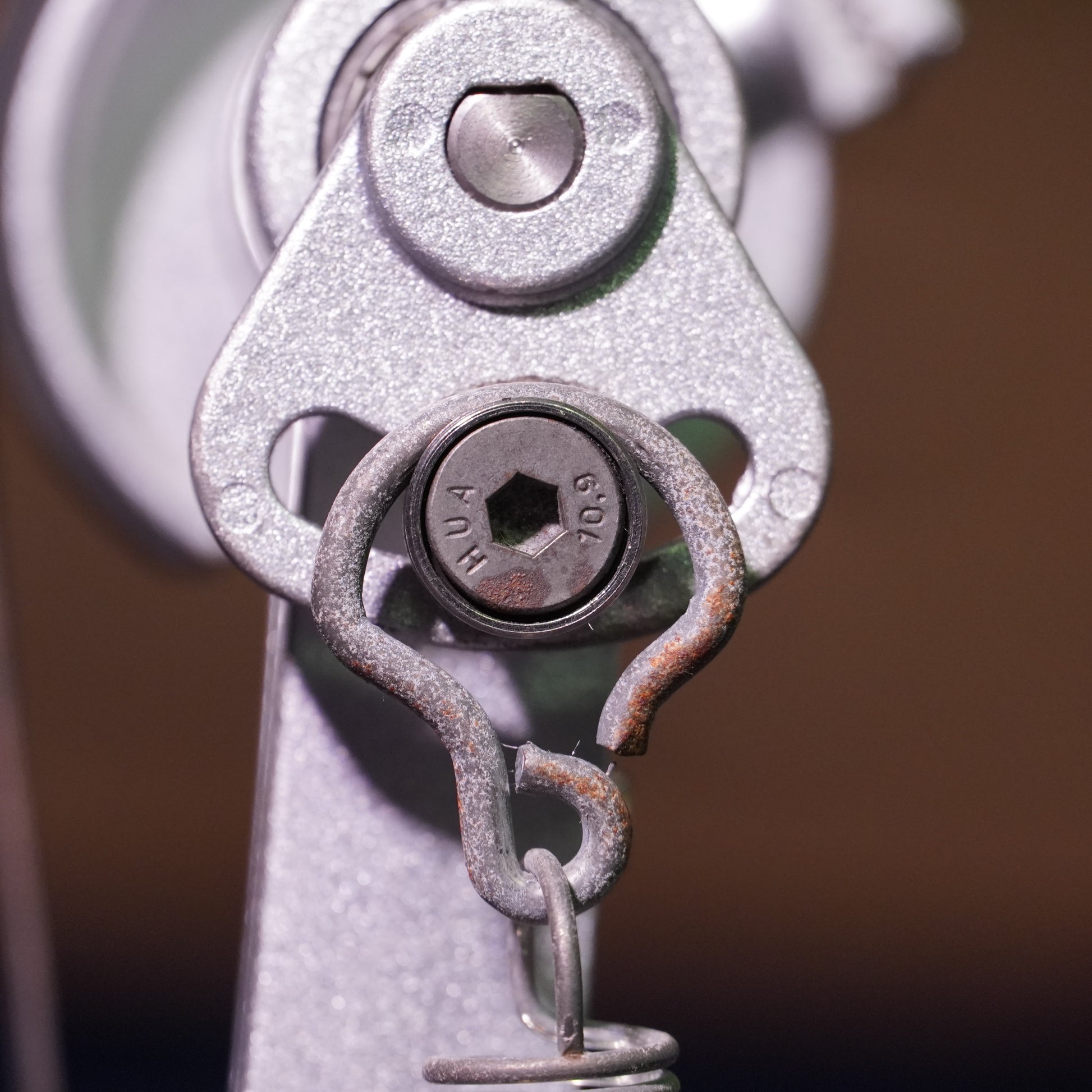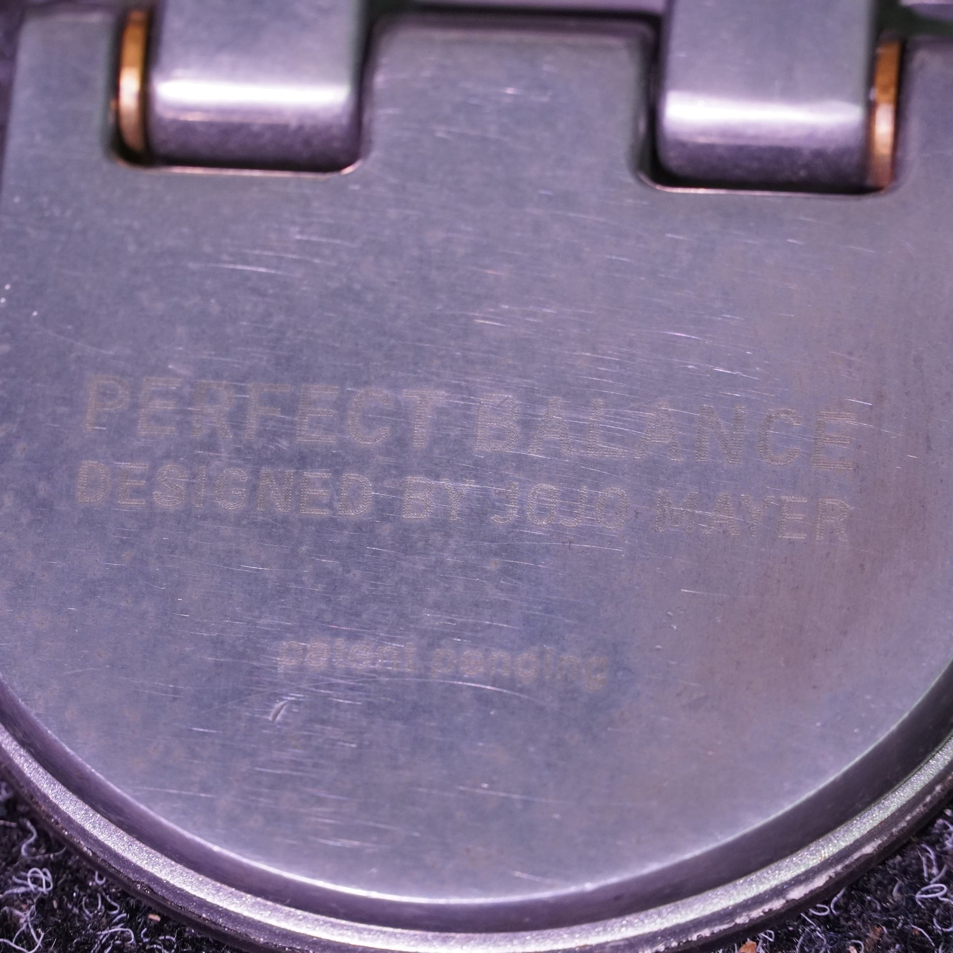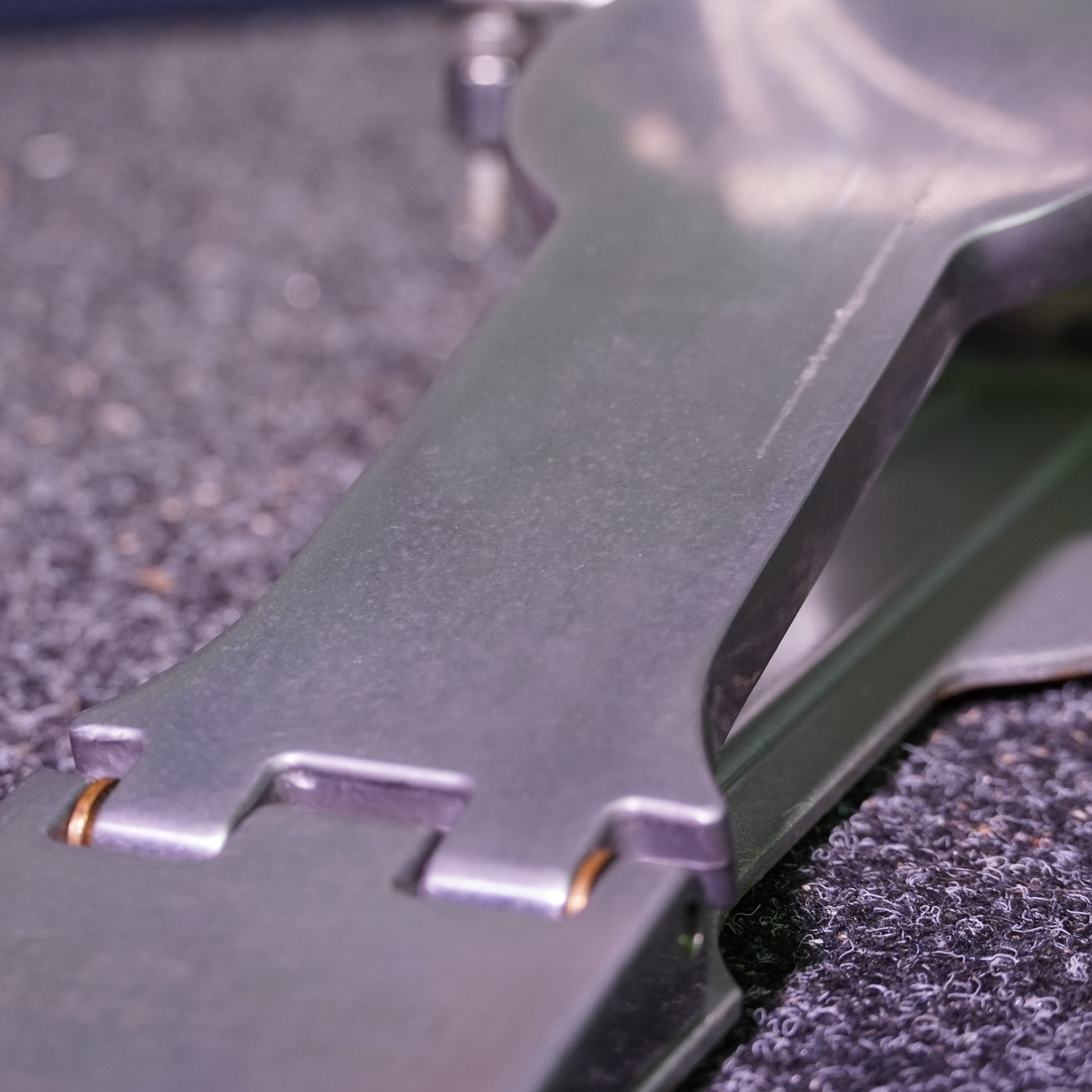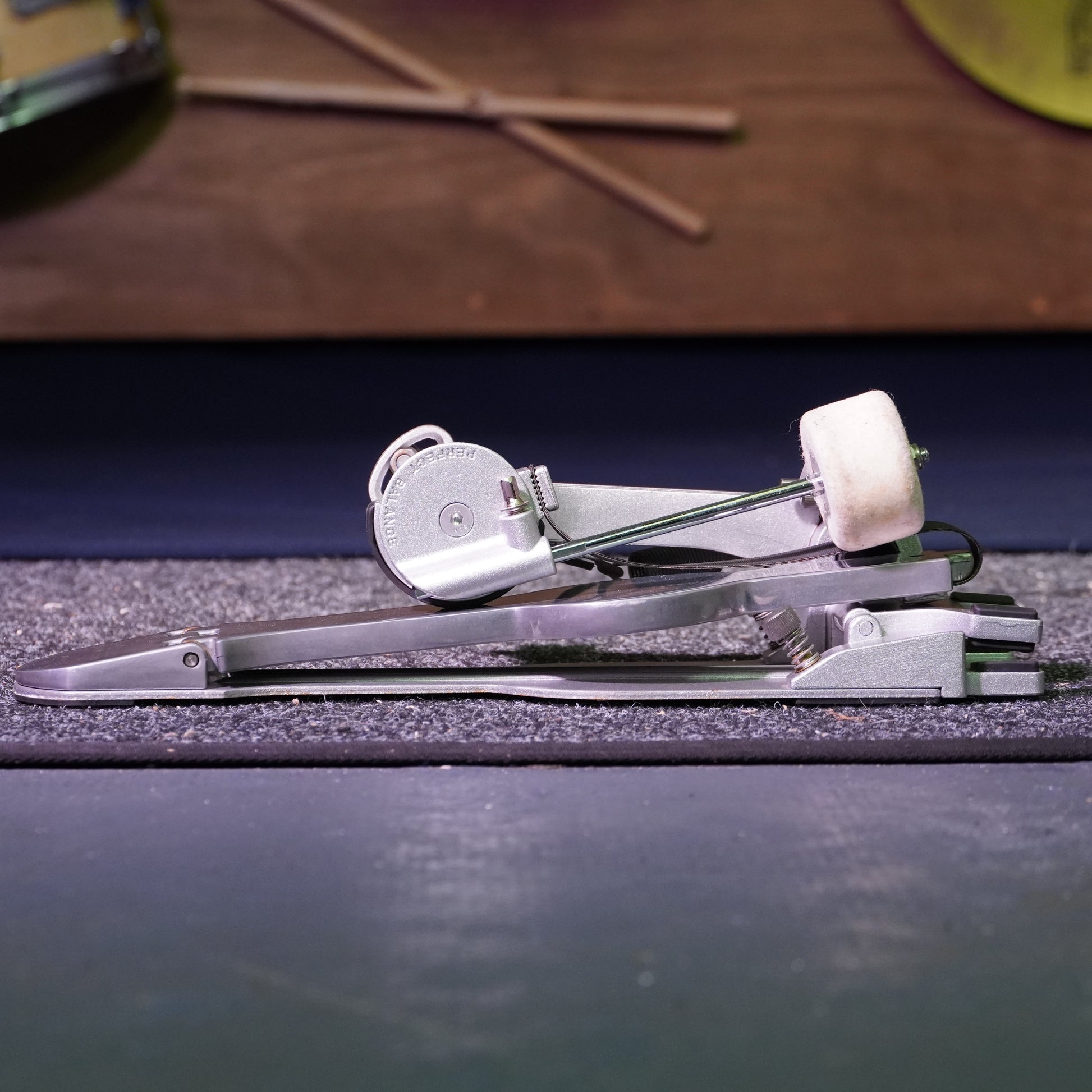 This pedal is in good condition but shows several signs of cosmetic and functional wear. There’s a noticeable scratch on the footboard, light rusting and dryness on the spring, and one missing rubber grip from the toe clamp which may cause slightly uneven mounting. The folding mechanism functions correctly but has some play when upright unless the toe clamp is fully tightened. Despite these quirks, the pedal plays well once secured and remains fully usable.