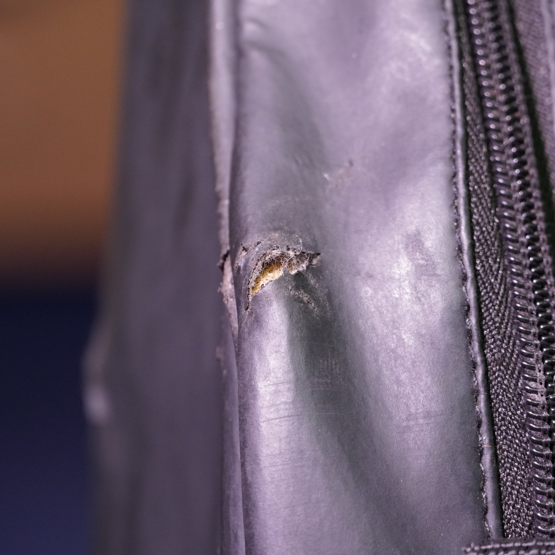 The bag has several small rips and tears but the zips and straps remain fully functional.