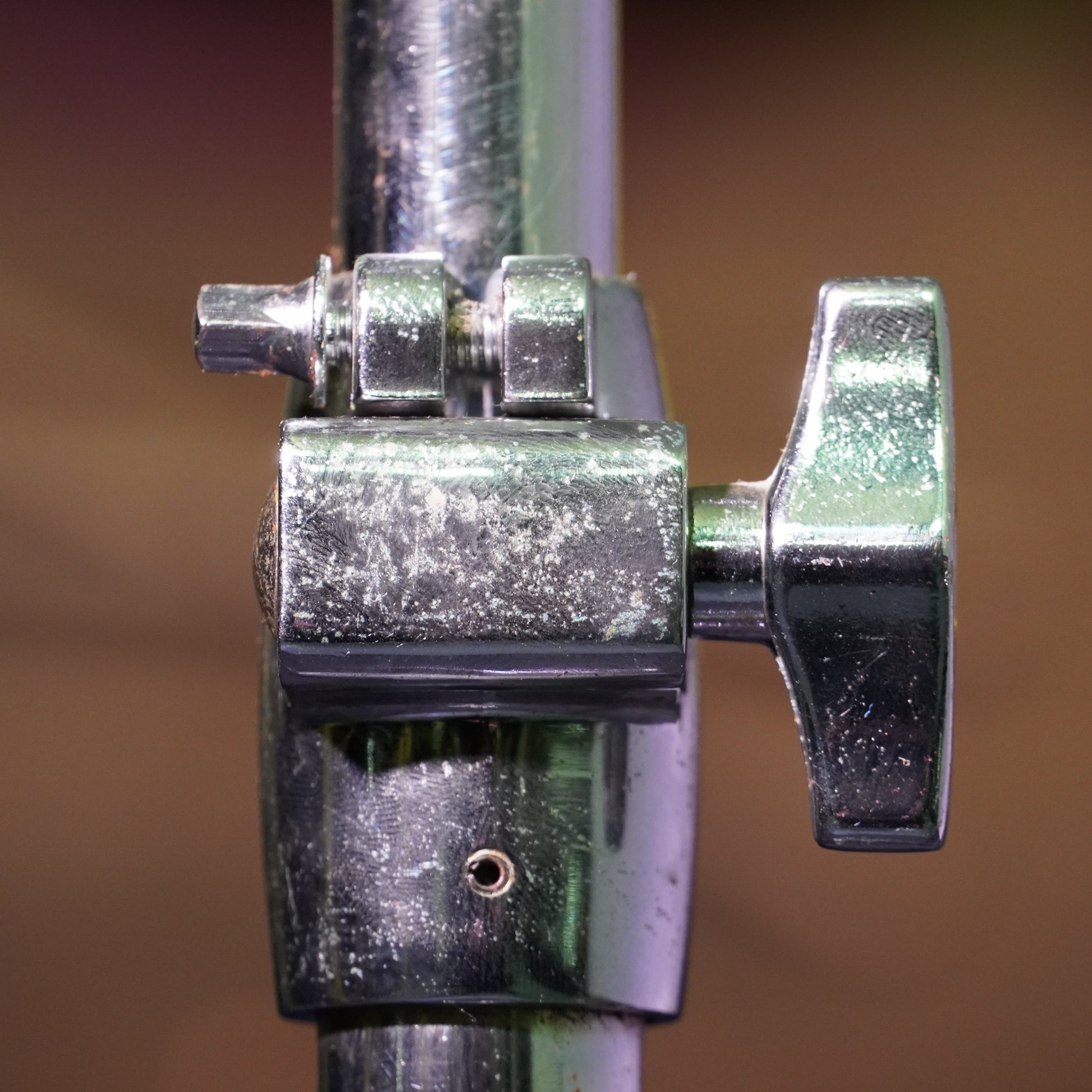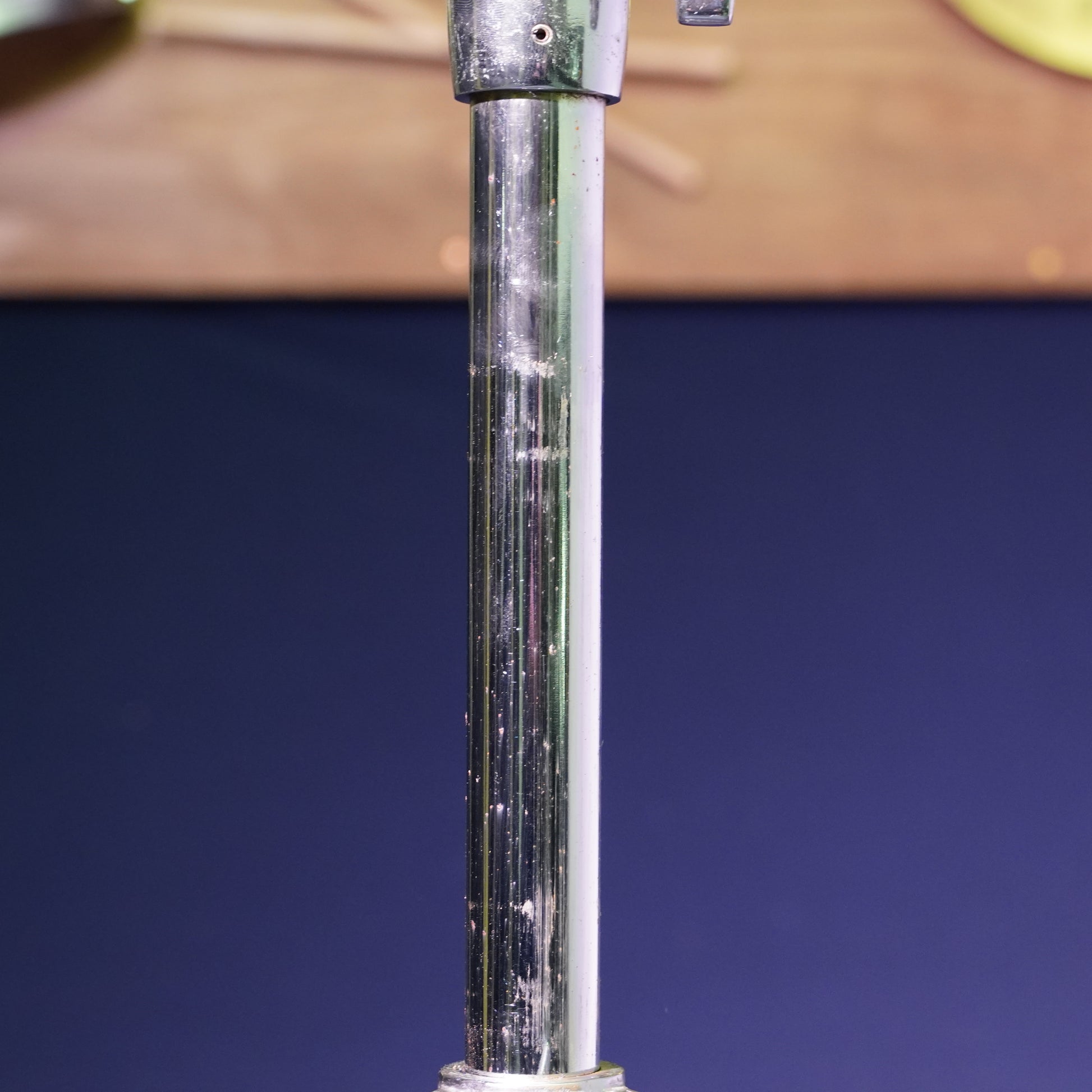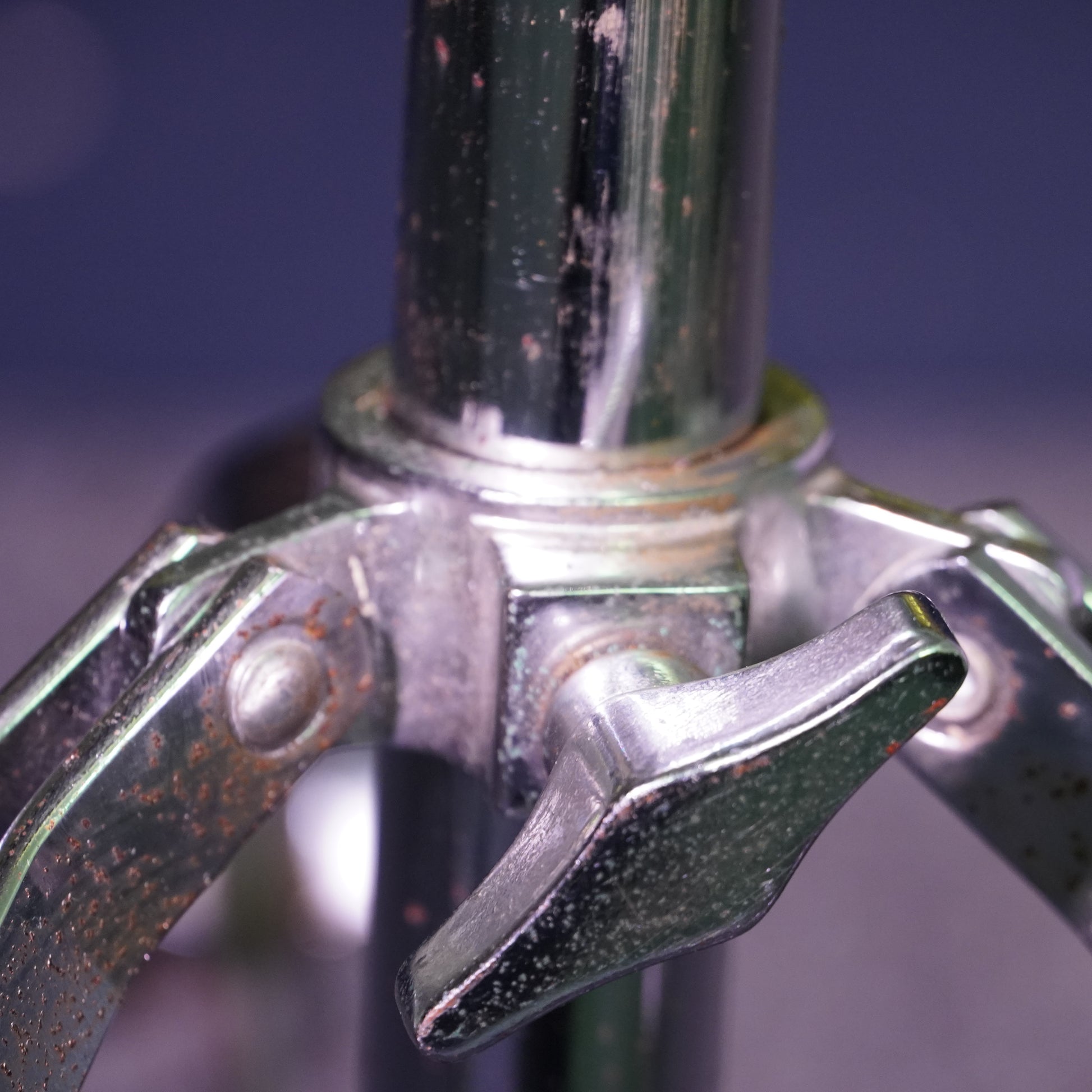 This stand is in fair condition, showing notable cosmetic pitting and wear throughout the chrome from previous rusting. The boom clamp has some play even when tightened fully it still holds position but with slight looseness. All other adjustments function as they should.