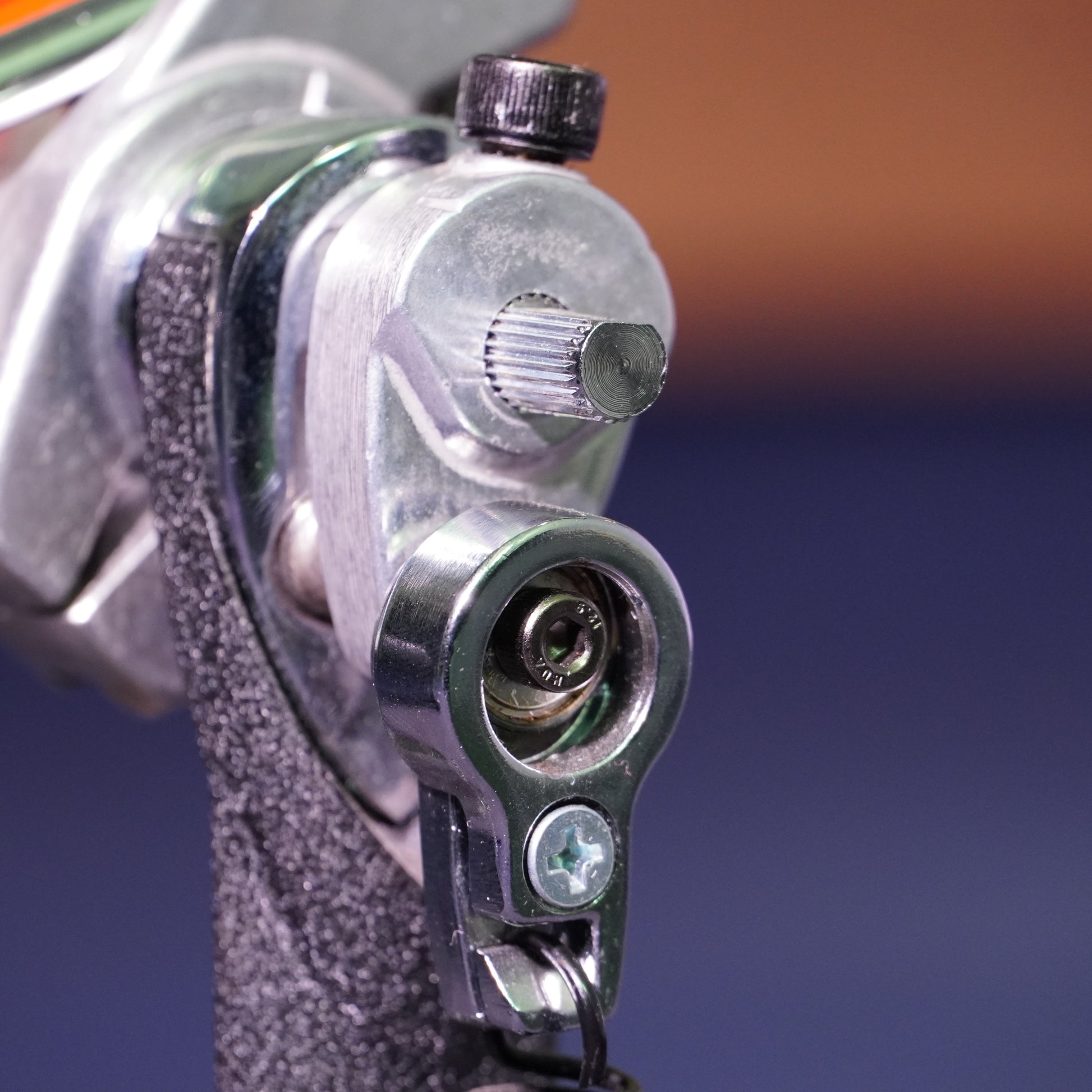 This pedal is in very good condition, showing cosmetic wear including some light rust on the chains and marks on the connecting shaft, but remains perfectly functional and smooth. All adjustments work as intended, both beaters are in great shape, and the action is responsive and balanced.
