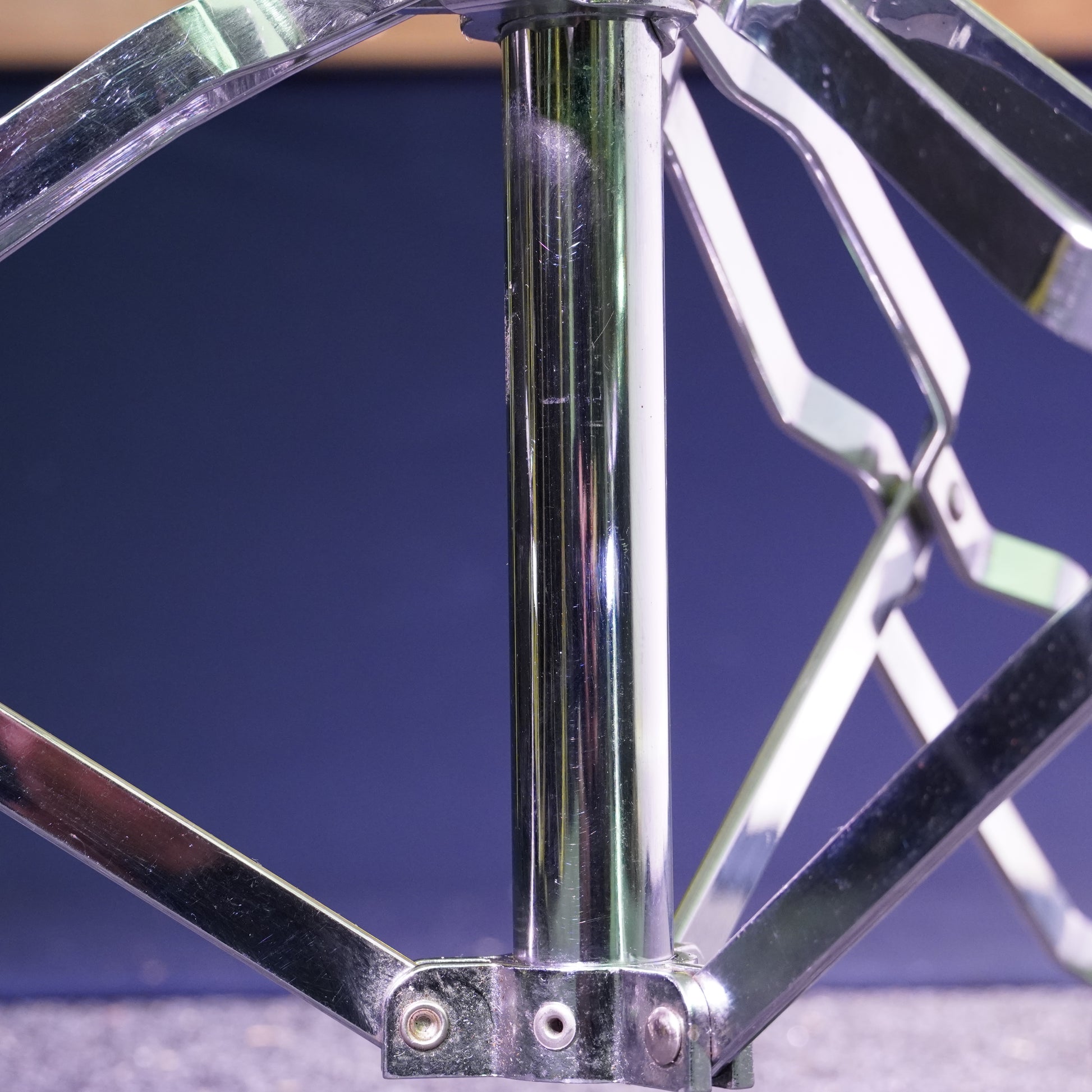 This stand is in great condition, showing light cosmetic marks from normal use but working perfectly throughout. All wing bolts tighten smoothly, the joints feel solid, and the chrome remains bright.